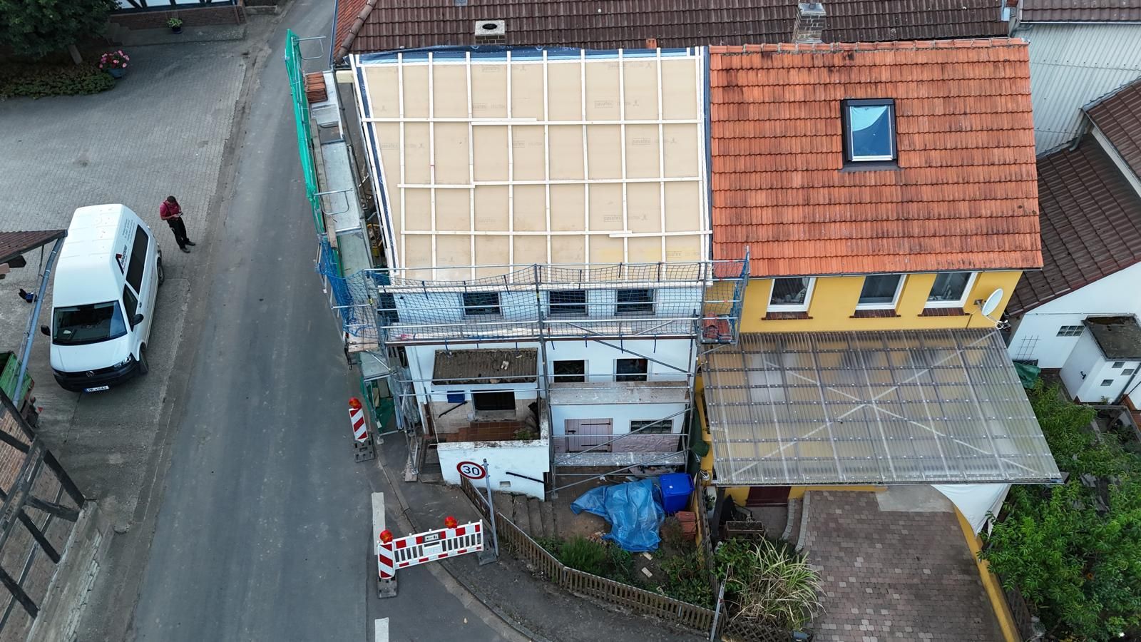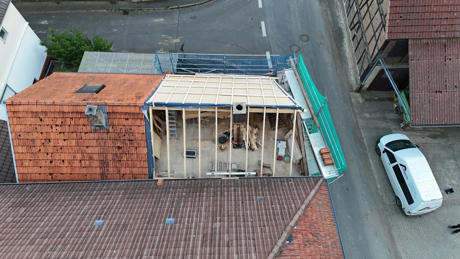 Bei diesem Projekt in Knüllwald haben wir ein in die Jahre gekommenes Dach in ein zukunftssicheres und energieeffizientes verwandelt. Die Aufnahmen dokumentieren unseren Leistungsumfang - vom strukturellen Neuaufbau bis zur hochmodernen Dacheindeckung.
